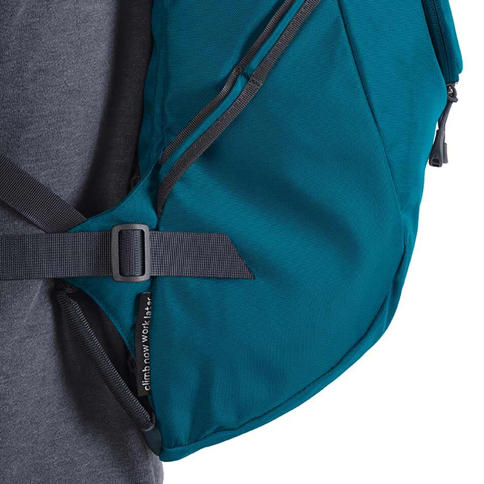 Gear loops and daisy chains on the side panels create more space for racking. This helps keep gear organised on long multipitch routes.