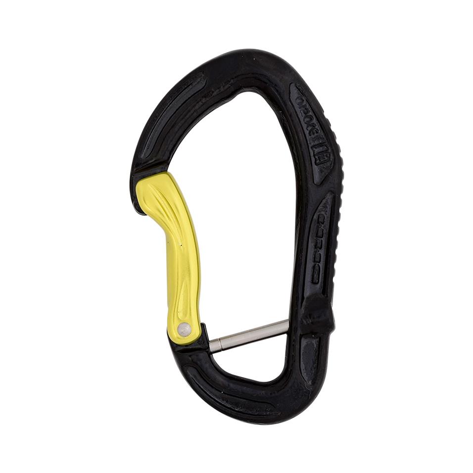 Our curved gate guides ropes into the carabiner during clipping. Grooves in the gate improve handling, and increase control when making tricky clips. Solid gate carabiners are suited to sport climbing, where ease of handling and resistance to wear are more important than weight.