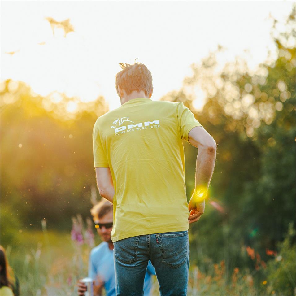 The Climb Now Work Later T-Shirt is the ultimate original look. Showcasing the iconic DMM logo and slogan on both front and back, and available in Molten Lava, Cyaneus and Warm Olive.
